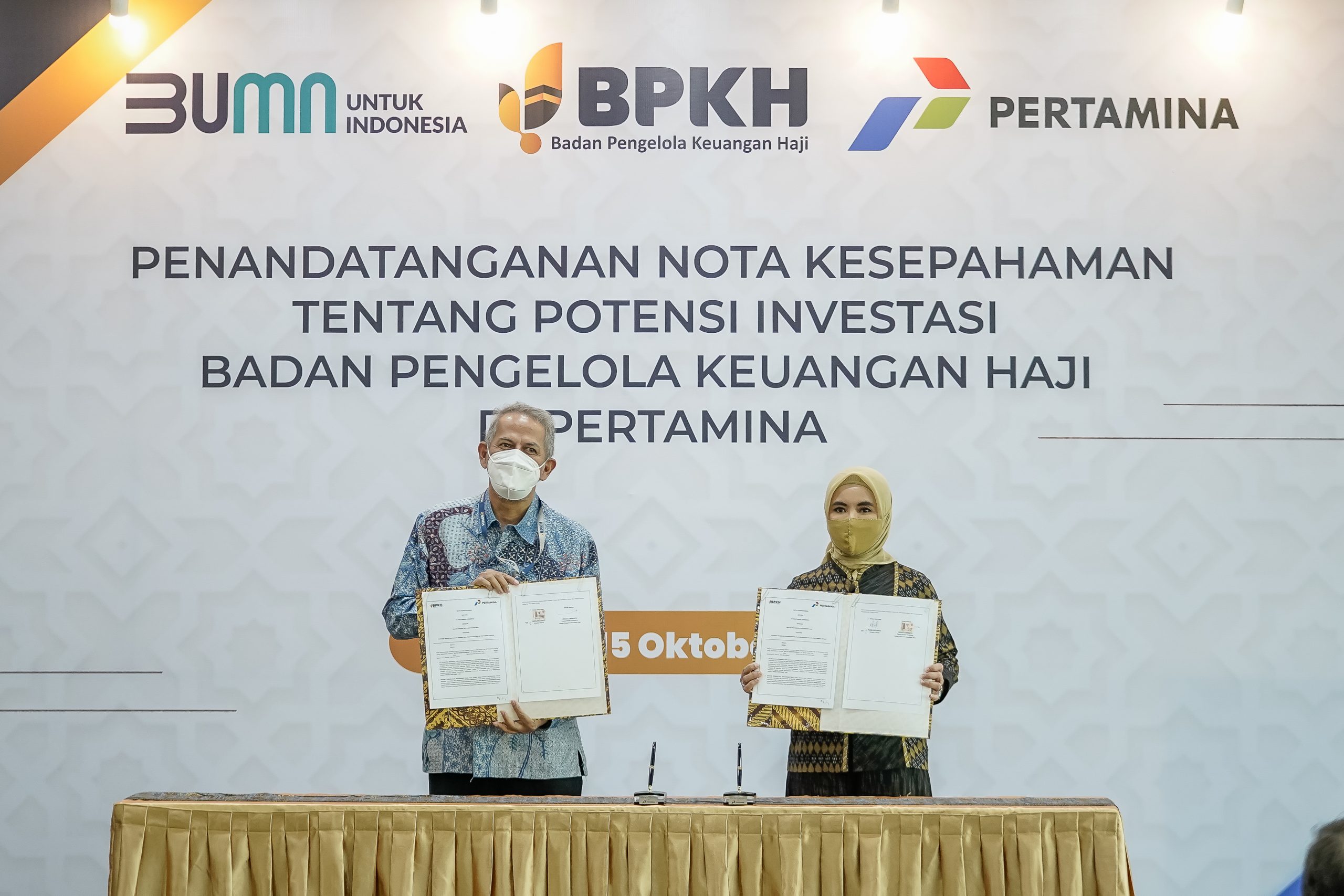 Jakarta,- Badan Pengelola Keuangan Haji (BPKH) terus  melakukan pengkajian kemungkinan potensi kerjasama investasi dengan PT Pertamina.  Dalam upaya melaksanakan mandat  Undang-Undang No. 34 Tahun 2014 tentang Pengelolaan Keuangan Haji, BPKH dapat melakukan pengelolaan keuangan haji melalui investasi, baik investasi surat berharga maupun investasi langsung dan investasi lainnya yang sesuai dengan prinsip syariah, keamanan, kehati-hatian, transparan dan akuntabel untuk mendapatkan nilai manfaat bagi sebesar-besarnya kepentingan jemaah haji. Nota kesepahaman potensi investasi ditandatangani di lingkungan Kementerian BUMN . Prosesi penandatanganan dilakukan oleh Kepala Badan Pelaksana BPKH, Anggito Abimanyu bersama Direktur Utama Pertamina, Nicke Widyawati. Beberapa potensi kerjasama investasi yang dapat dilakukan di antaranya berupa pembiayaan melalui pasar modal, bentuk-bentuk kerjasama strategis lainnya. sebagaimana disampaikan oleh Kepala BP BPKH Anggito Abimanyu, “Sinergi antara BPKH dan Pertamina diharapkan dapat mendukung pencapaian target portofolio investasi dan nilai manfaat BPKH di masa mendatang. Pencapaian target portofolio investasi dan nilai manfaat akan digunakan sebesar-besarnya untuk kepentingan jemaah haji”,  terangnya. Direktur Utama Pertamina Nicke Widyawati menyambut baik adanya peluang kerjasama ini. Mengingat sebagai salah satu BUMN terbesar di tanah air, Pertamina memiliki peran untuk mendorong perekonomian Indonesia, termasuk melalui investasi dan Proyek Strategis Nasional. "Ada beberapa investasi yang secara paralel kita kerjakan yaitu terkait dengan kemandirian energi terkait fossil fuel, penambahan kapasitas di kilang minyak yang kita integrasikan dengan pembangunan petrochemical plant dan New Renewable Energy. Semoga ini menjadi kebaikan bagi masyarakat dan negara dalam membangun kemandirian dan kedaulatan energi nasional" imbuh Nicke.
