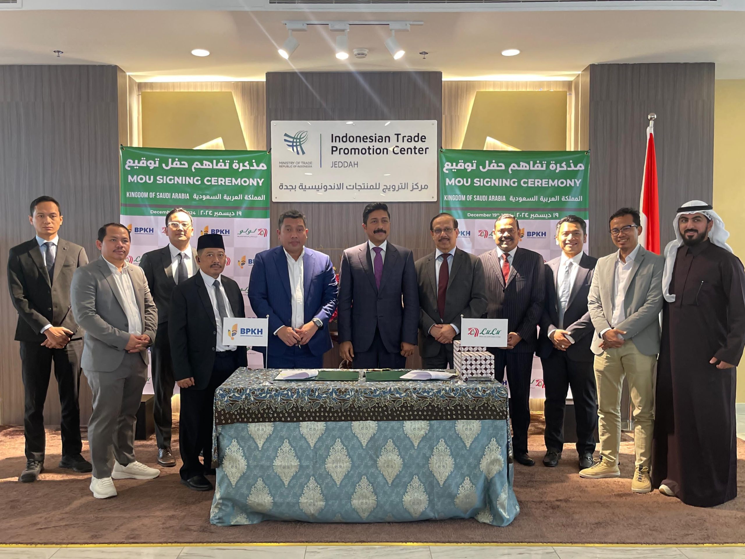 Jeddah– Badan Pengelola Keuangan Haji (BPKH) menjalin kemitraan strategis dengan PT. Lulu Group International untuk meningkatkan kualitas layanan bagi jemaah haji dan umrah Indonesia di Arab Saudi. Penandatanganan Nota Kesepahaman (MoU) yang berlangsung di Kantor Indonesian Trade Promotion Center (ITPC), Jeddah, pada Kamis (19/12) ini menandai komitmen bersama untuk memberikan layanan dan pengalaman beribadah yang lebih baik bagi para jemaah.