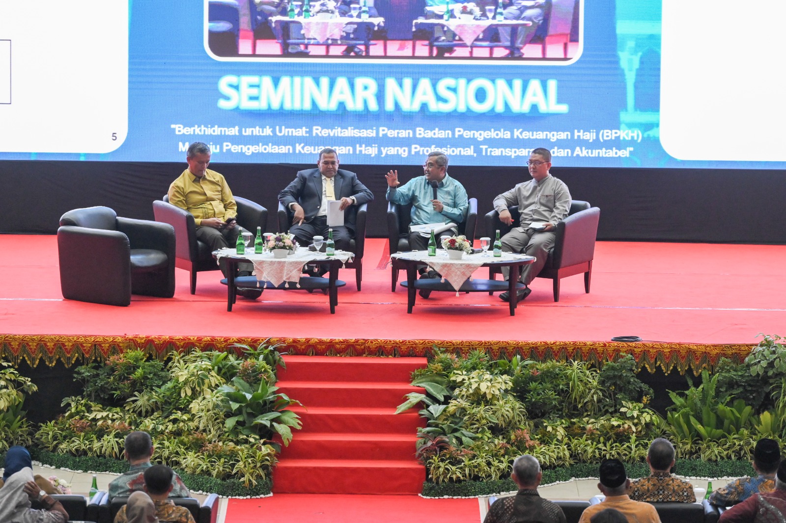 Banda Aceh - Badan Pengelola Keuangan Haji (BPKH) berkolaborasi dengan Universitas Syiah Kuala (USK) menggelar seminar nasional, di AAC Dayan Dawood, Banda Aceh, Kamis (14/9/2023).