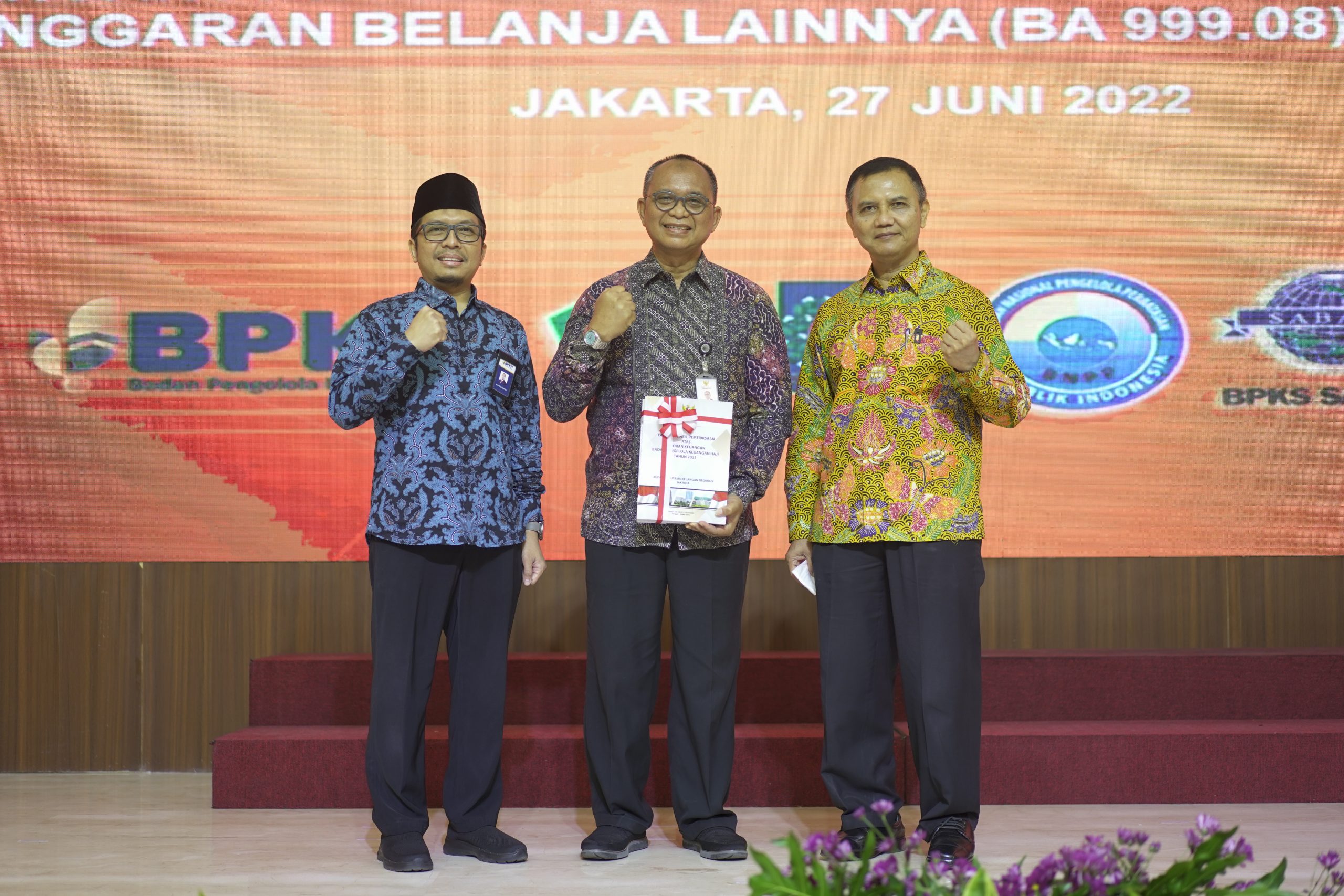 Jakarta, 27 Juni 2022 - Badan Pengelola Keuangan Haji (BPKH) kembali mendapat Opini Wajar Tanpa Pengecualian (WTP) dari Badan Pemeriksa Keuangan (BPK) untuk keempat kalinya. Ini merupakan Opini WTP yang diterima BPKH berturut-turut semenjak tahun 2018. Laporan Hasil Pemeriksaan Keuangan BPKH Tahun Anggaran 2021 tersebut diterima langsung oleh Kepala Badan Pelaksana BPKH, Anggito Abimanyu, Senin (27/6) di auditorium BPK.