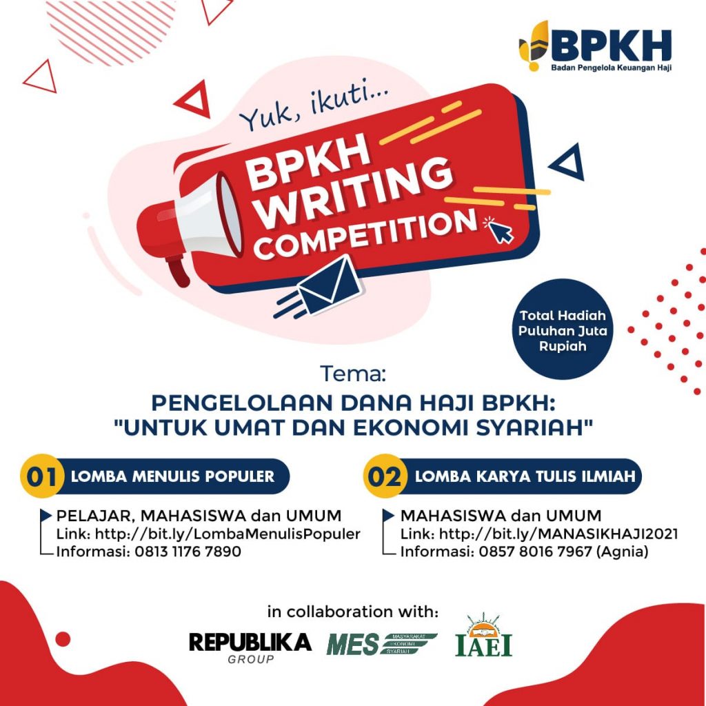 Berkolaborasi dengan @republikaonline, @mes.indonesia dan @iaeiindonesia, BPKH RI menyelenggarakan Lomba Menulis “dengan jenis lomba berikut ini: