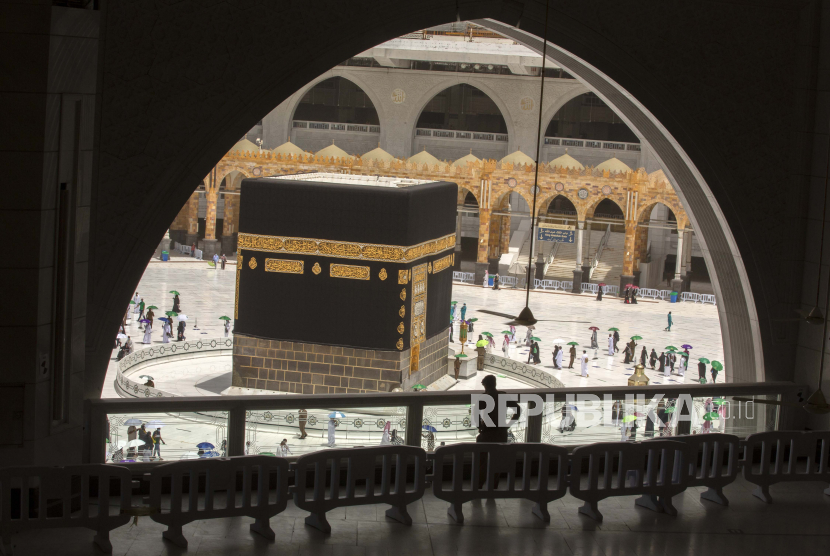IHRAM.CO.ID, MAKKAH -- Setelah sukses menyelesaikan musim haji, jamaah umroh gelombang pertama tiba di Masjidil Haram, Makkah, Arab Saudi, Ahad pagi (25/7). Mereka mengikuti langkah-langkah pencegahan virus Covid-19.