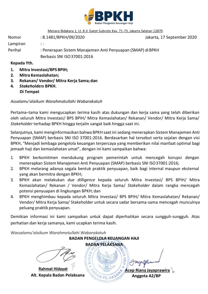 Penerapan Sistem Manajemen Anti Penyuapan (SMAP) di BPKH