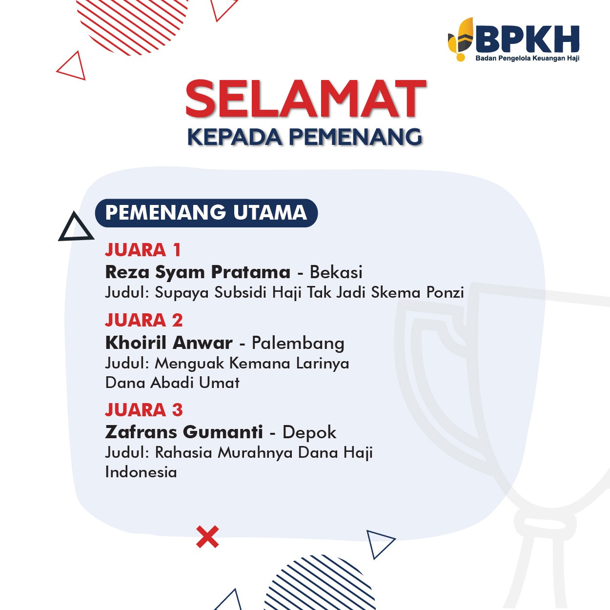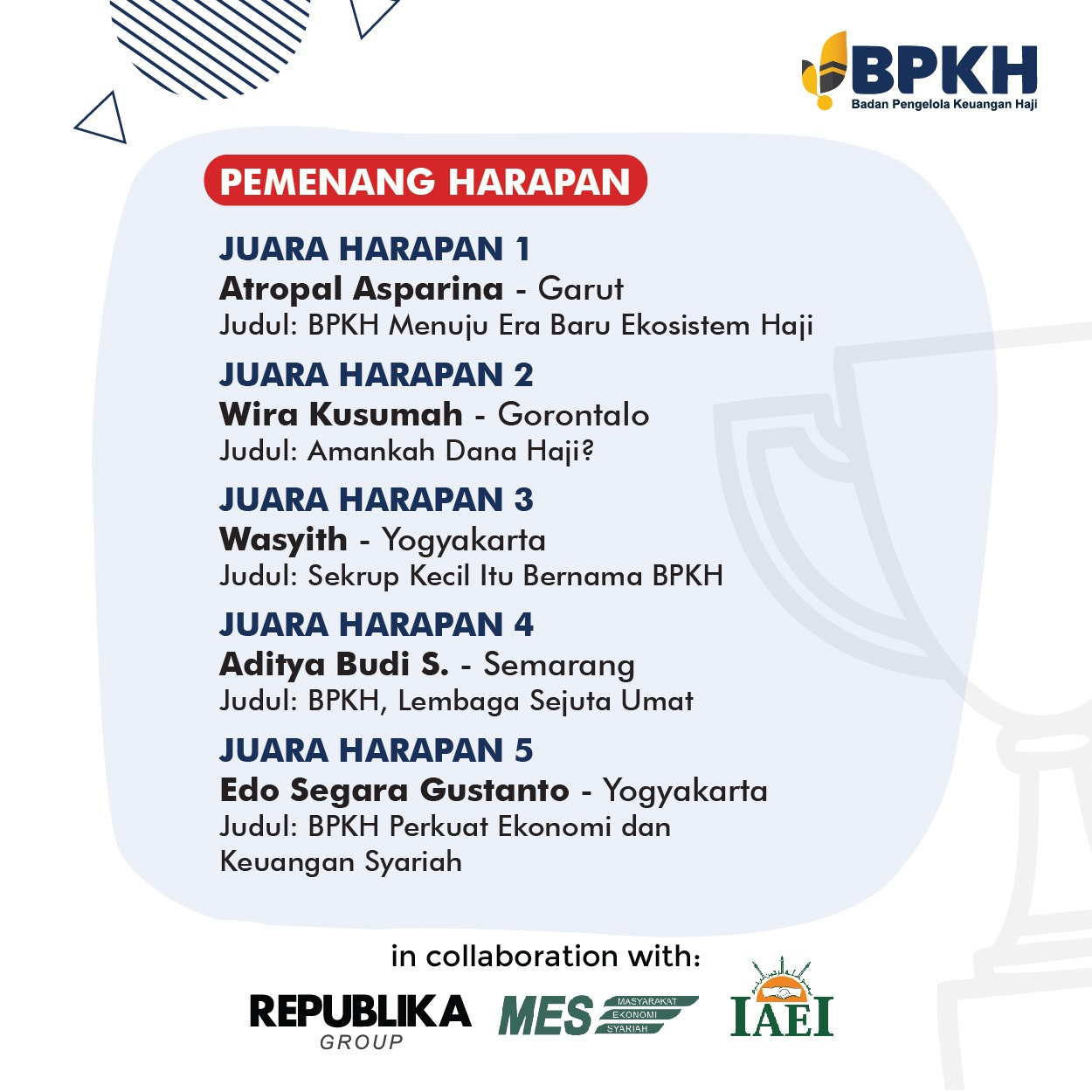 Ini dia pemenang BPKH Writing Competition yang berkolaborasi dengan REPUBLIKA dan IAEI: