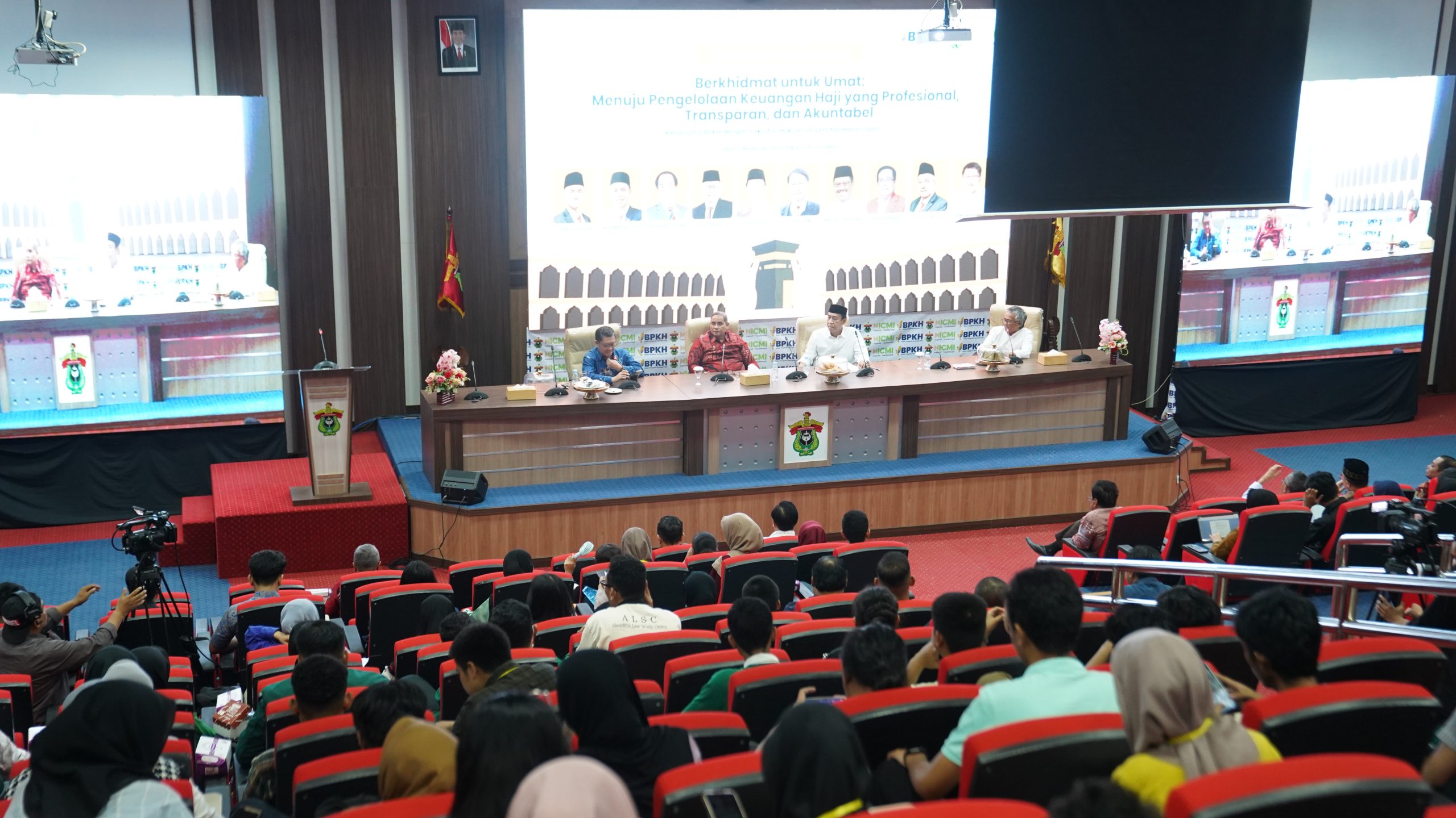 Makassar - Badan Pengelola Keuangan Haji (BPKH) berkolaborasi dengan Universitas Hasanuddin dan Ikatan Cendekiawan Muslim Indonesia (ICMI) menggelar seminar nasional dengan judul Berkhidmat untuk Umat: Menuju Pengelolaan Keuangan haji yang Profesional, Transparan, dan Akuntabel di Fakultas Hukum, Universitas Hasanuddin Makassar, Jum’at (3/11/2023).